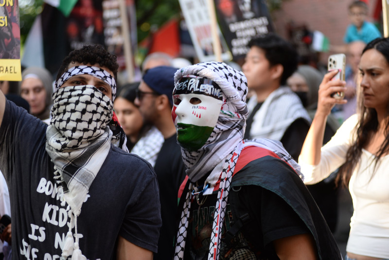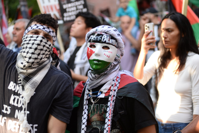 "Gazze'de hemen ateşkes", "Filistin'e özgürlük" ve "Soykırımı durdurun" şeklinde sloganlar atan göstericiler, ellerinde Biden yönetimine Gazze konusunda çeşitli mesajlar gönderen pankartlar taşıdılar.