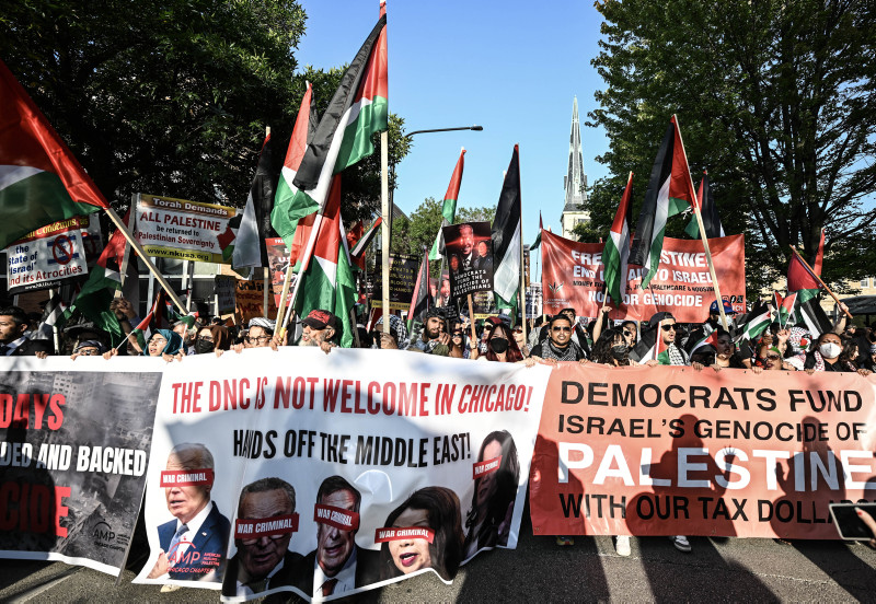 Chicago'da pazartesi günü başlayan Demokrat Parti Kongresi boyunca ABD'nin İsrail'e desteğini kesmesini talep eden grupların gösterileri devam ediyor.