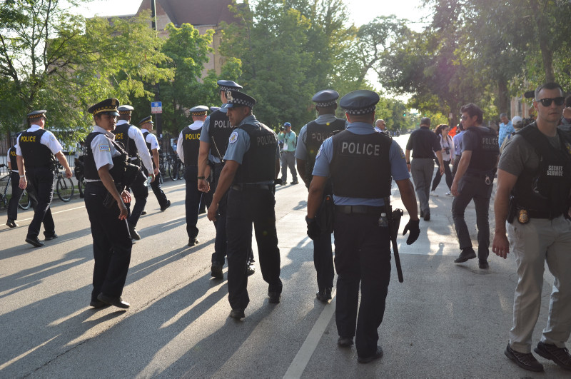 Dünkü eylemde göstericilere sert müdahale eden Chicago polisi ise göstericilerin etrafında geniş güvenlik önlemleri aldı ve göstericilerin kongrenin yapıldığı alana yaklaşmasına izin vermedi.