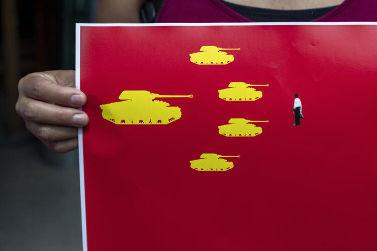 Fotoğrafta, Çin'a ait asker üniforması giyen güvenlik güçlerinin yüzlerindeki koruyucu maskeler dikkat çekiyordu. Bu da fotoğrafın corona virüs salgını sırasında çekildiğini ve yakın tarihli olduğunu kanıtlıyordu.