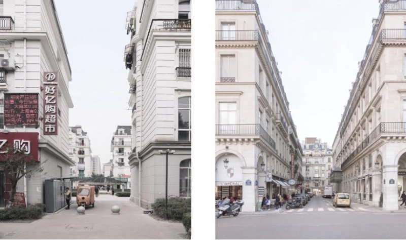 Prost, Paris'teki Eyfel Kulesi, Zafer Takı, Champ de Mars, Pantheon, Louvre Müzesi gibi ikonik yerlerin birebir aynısının 6 bin kilometre uzağa inşa edildiği Çin kentini fotoğraflayarak, iki şehri birbiriyle kıyasladı.