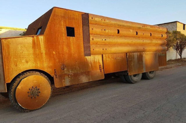 Araçlarda, sadece sürücünün görebileceği küçük bir alan boş bırakılırken, araçların tekerleklerine kadar demir zırh ile donatıldığı bildirildi.
