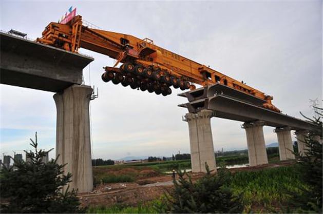Çin'in kuzeydoğusunda yer alan Jilin eyaletinin Hunchun şehrinde inşaat halindeki hızlı tren yolunda köprü inşaatı bakın nasıl gerçekleşiyor.