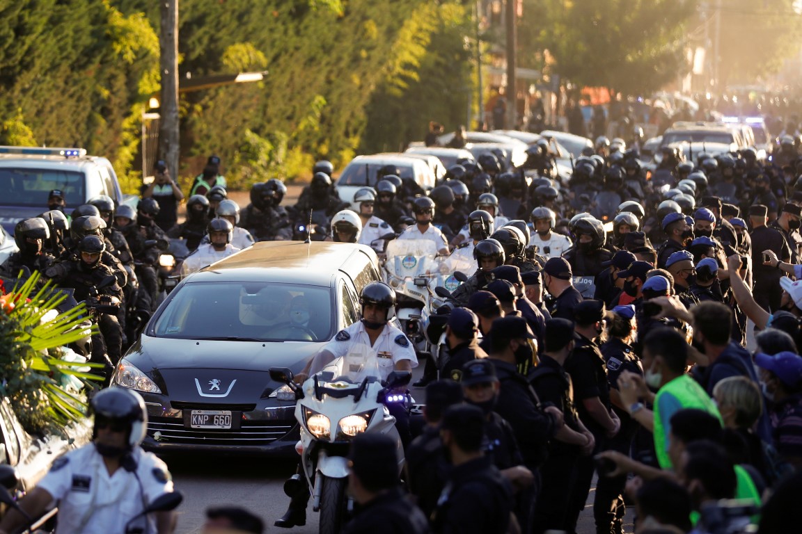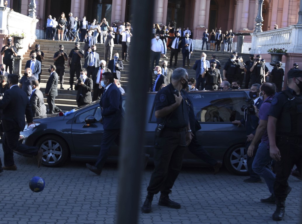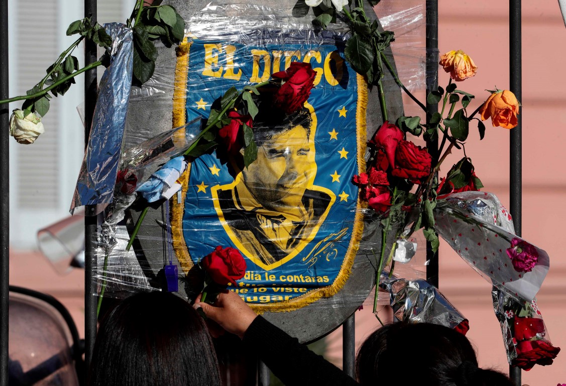 Maradona'nın Arjantin bayrağına sarılı tabutu sevenlerinin vedası için Arjantin Devlet Başkanlığı binasına getirilirken, Arjantin Devlet Başkanlığı binası yerel saatle 06.00'da kapılarını Maradona'nın sevenlerine açmıştı.