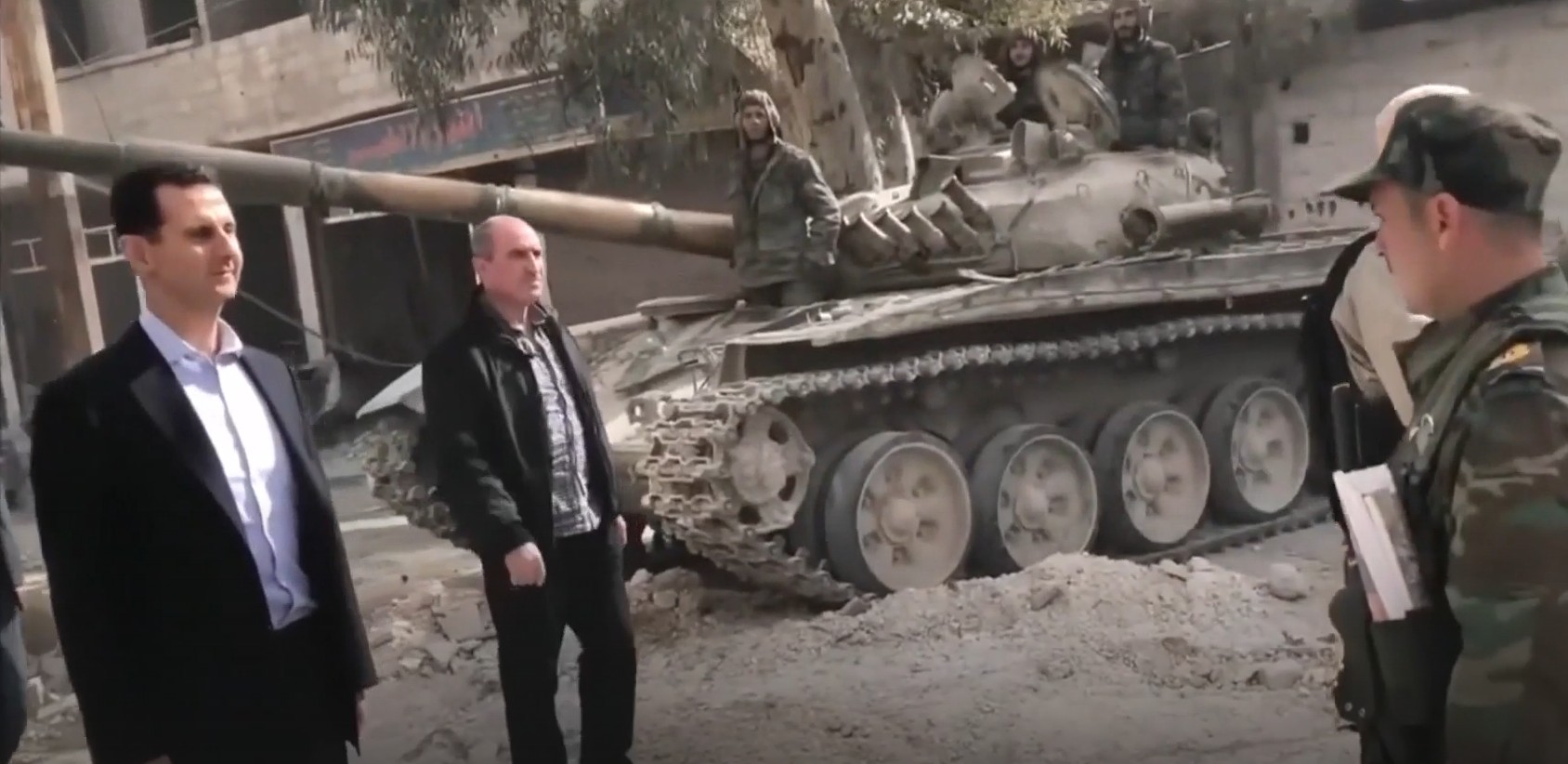 Görüntülerde Esad ve Şebil, yalnızca Rusya ve Suriyelilerle değil, rejimin tüm güvenlik yapısıyla alay ediyor.
