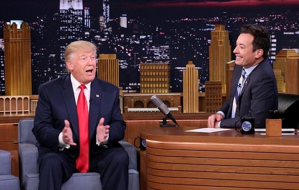 Tonight Show'un sunucusu Jimmy Fallon canlı yayında ABD Başkan Adayı Donald Trump'ın saç modelini bozmaya ikna ederek saçını karıştırdı.