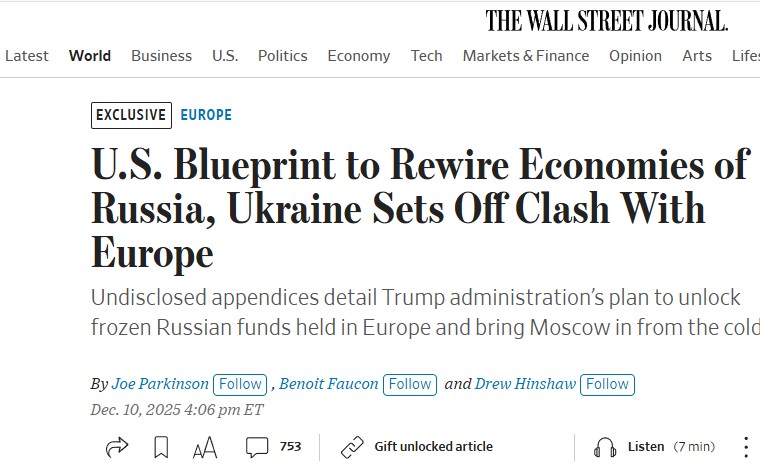 WSJ'nin aktardığına göre, ABD'nin hazırladığı belgelerde, ABD finans şirketlerinin ve özel sektörün, Avrupa'da tutulan dondurulmuş Rus varlıklarından yaklaşık 200 milyar doları kullanarak Ukrayna'da dev projeler yürütmesi öngörülüyor.