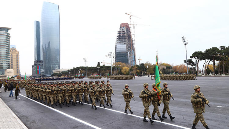 Son dakika gelen habere göre; Azerbaycanlılar, Dağlık Karabağ'da elde edilen zafer dolayısıyla başkent Bakü'de yarın düzenlenecek askeri geçit törenini sabırsızlıkla bekliyor. Savaşta kahramanlık gösteren askerlerden 3 bininin geçit yapacağı törende, ordunun kullanımına verilen modern silah ve ekipman da yer alacak.