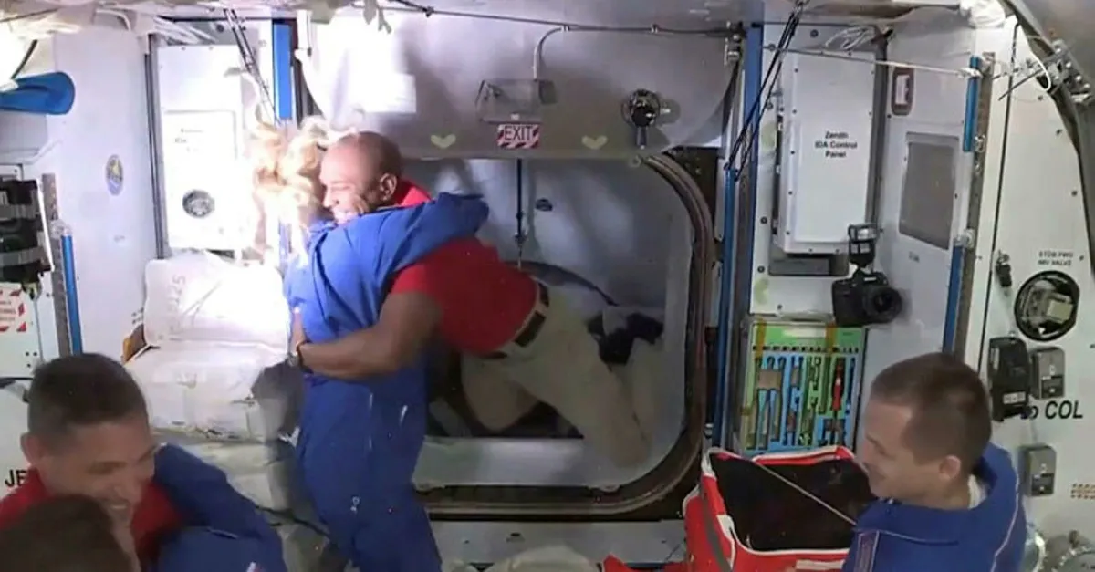 NASA astronotları Mike Hopkins, Victor Glover ve Shannon Walker ile Japonya Uzay Araştırma Ajansından (JAXA) Soichi Noguchi'yi ISS'te diğer astronotlar karşıladı.