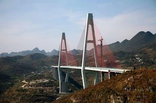 2012'de kullanılmaya başlanan asma köprü, dünyanın en yüksek köprüsü konumunda ayrıca dünyanın en uzunlarından. Dehang Kanyonu'na açılan iki tüneli birleştiren köprü yerden tam 366 m yüksekte ve yaklaşık 1,2 km uzunluğa sahip.