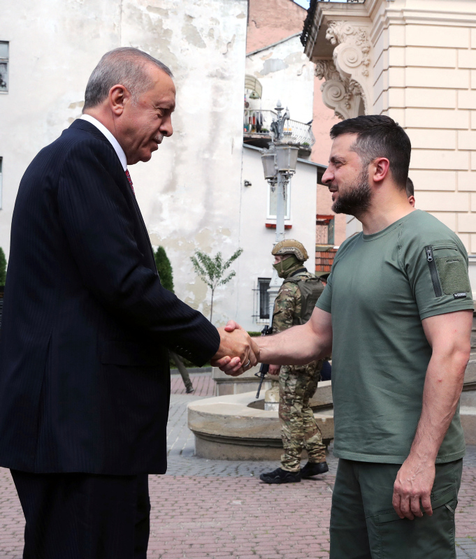 Başkan Recep Tayyip Erdoğan, savaşın başlamasından bu yana ilk kez Ukrayna'ya gitti. Uçakla Polonya'nın Rzeszow kentine gitmesinin ardından Başkan Erdoğan, karayoluyla Ukrayna'nın batısındaki Lviv kentine geçti. Erdoğan, önce Ukrayna Cumhurbaşkanı Volodimir Zelenskiy ile ikili olarak görüşecek. Ardından Zelenskiy ve Birleşmiş Milletler Genel Sekreteri Antonio Guterres'le üçlü zirve başlayacak.