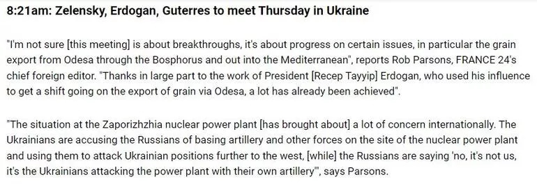 Başkan Recep Tayyip Erdoğan ve BM Genel Sekreteri Antonio Guterres Ukrayna Devlet Başkanı Volodymyr Zelenskiy'nin davetini kabul etti ve küresel tahıl krizini hafifletmeye yardımcı olmak için Ukrayna tahılının dünya pazarlarına gönderilmesine izin veren anlaşmayı gözden geçirmek ve altı aylık savaşı sona erdirmenin yollarını görüşecek.