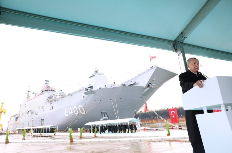 Başkan Erdoğan'ın "Pazartesi günü inşallah uçak gemimiz TCG Anadolu'yu devreye alıyoruz ve Silahlı Kuvvetlerimize teslim ediyoruz" ifadelerine yer verdi.