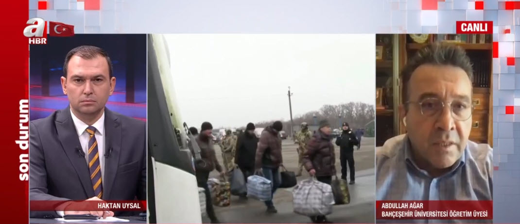 Ukrayna Devlet Başkanlığı Ofis Başkanı Andriy Yermak, Rusya-Ukrayna Savaşı sırasında esir düşen 215 esirin takasının yapıldığını duyurarak, "Bu, Devlet Başkanı Zelenskiy ile Cumhurbaşkanı Erdoğan arasındaki kişisel anlaşmaların sonucudur" dedi. Cumhurbaşkanı Recep Tayyip Erdoğan ise, esir takasını savaşın sonlandırılması yolunda önemli bir adım olarak nitelendirdi. Ukrayna Devlet Başkanı Volodimir Zelenskiy, Türkiye'nin arabuluculuğuyla Rusya ile yapılan esir takası sonrası ülkeye iade edilen 215 Ukraynalı için Cumhurbaşkanı Recep Tayyip Erdoğan'a teşekkür etti. Esir takası nasıl yapıldı? Bahçeşehir Üniversitesi Öğretim Üyesi Abdullah Ağar, A Haber canlı yayınında konu ile ilgili değerlendirmelerde bulundu. Ağar, "Türkiye'nin başardığı son derece büyük bir iş" ifadelerini kullandı.