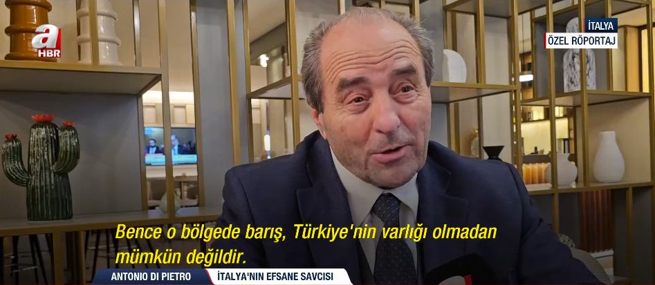 İtalya'da 1990'lı yıllara damga vuran "Temiz Eller" (Mani Pulite) operasyonunun mimarı, efsane savcı Antonio Di Pietro, A Haber'e özel açıklamalarda bulundu. Yolsuzlukla mücadelede tavizsiz duruşun altını çizen Di Pietro, Türkiye'nin bölgesel ve küresel dengelerdeki rolüne dikkat çekerek "Bölgede barış Türkiye olmadan mümkün değil" mesajı verdi. Türkiye'nin Doğu ile Batı arasında kilit bir köprü olduğunu vurgulayan Di Pietro, barış ve istikrar için Ankara'nın vazgeçilmez bir aktör olduğunu ifade etti.