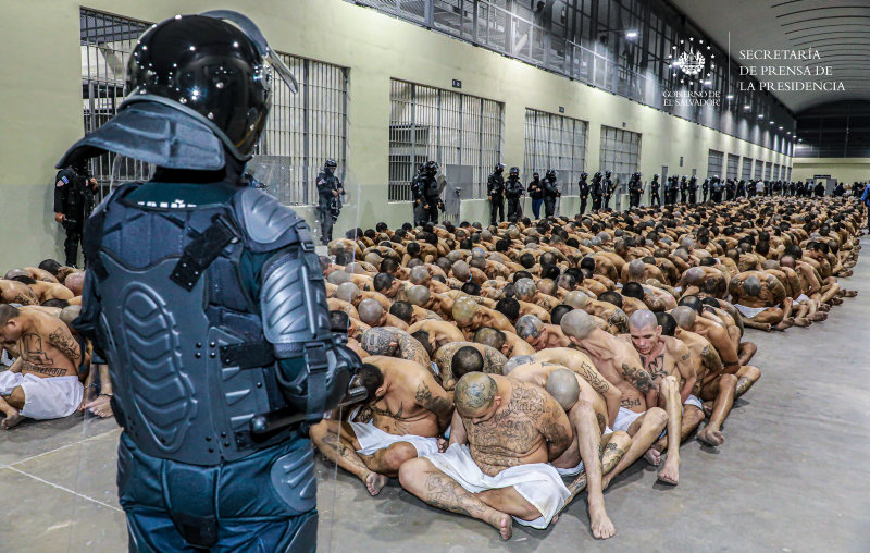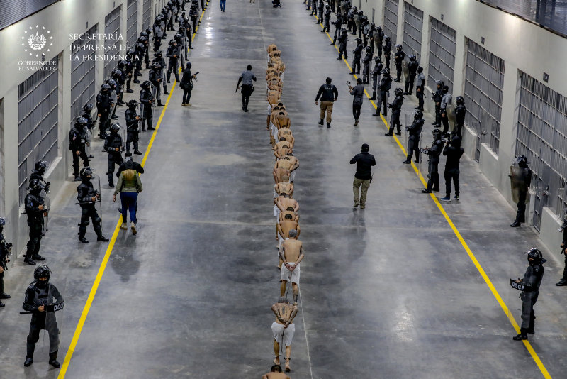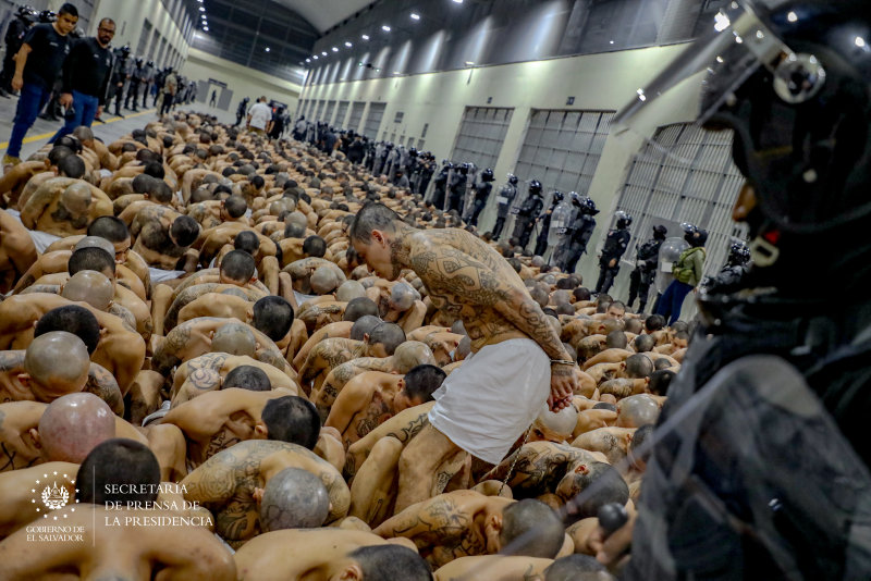 Orta Amerika ülkesi El Salvador'da açılan mega hapishanenin içinden gelen fotoğraflar ve mahkumlar yaşam şartları bugün yine dünya gündeminde. 2 bin yeni mahkumun nakledildiği mega hapishanedeki yatak ve yorgansız yataklar basınla paylaşıldı.