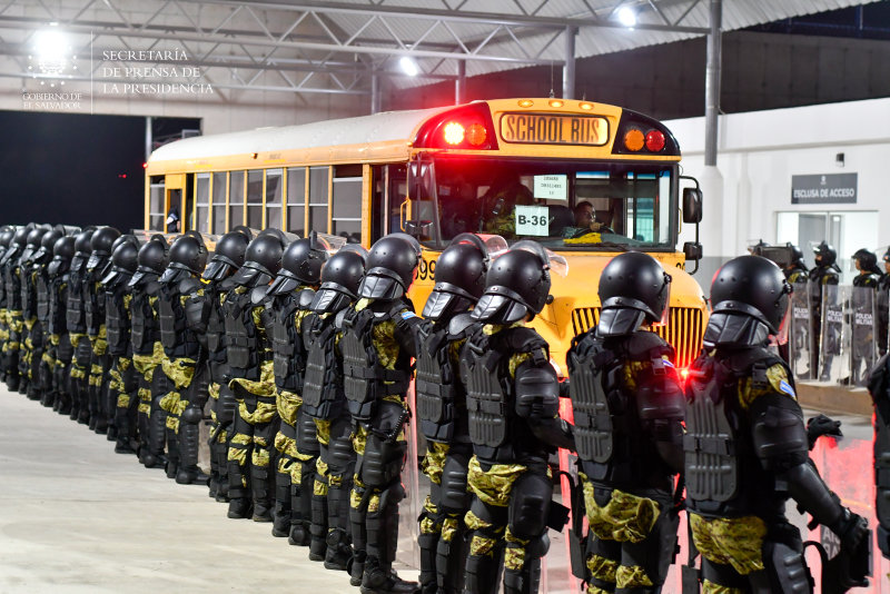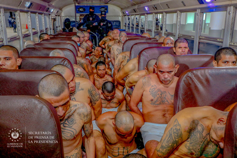 Mahkumlar 40 binden fazla çete üyesini barındıracak yeni hapishaneye yoğun güvenlik önlemleri altında getirildi.