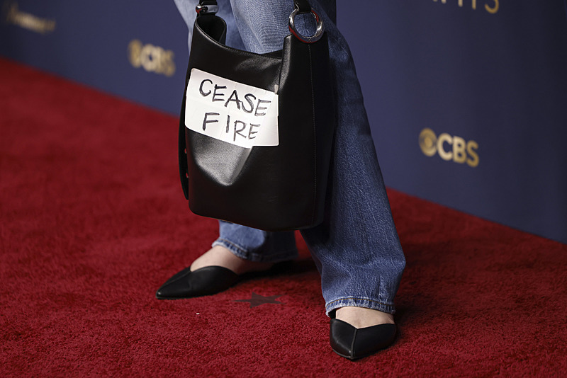 Los Angeles, California'da pazar gecesi düzenlenen 77. Emmy Ödülleri töreninde birçok sanatçı, kefiye takarak ve "ATEŞKES!" yazılı çanta taşıyarak sahnede ve kırmızı halıda "Özgür Filistin" çağrısında bulundu.
