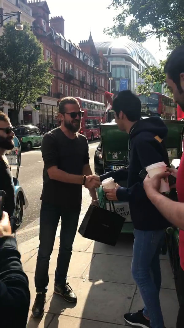 Bayram tatili için Londra'ya giden Diriliş Ertuğrul dizisinin başarılı oyuncusu Engin Altan Düzyatan'a ilgi yoğundu.