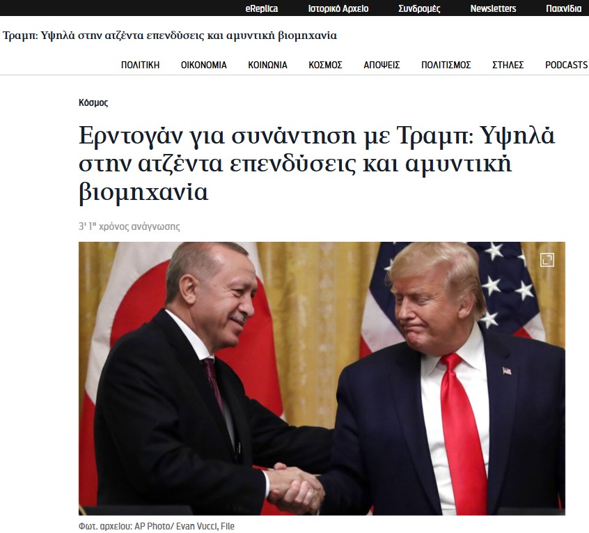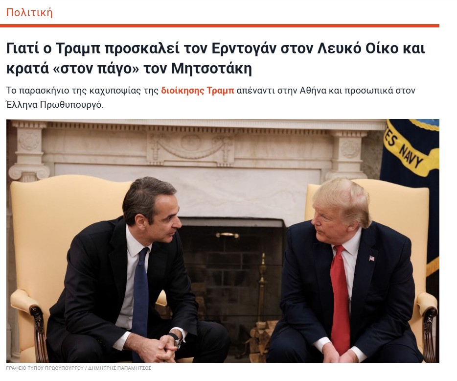Yunanistan'ın Iideseis gazetesi, Trump'ın Erdoğan'ı Beyaz Saray'da ağırlayacak olmasının Atina'da kaygı yarattığını aktardı. Haberde, Miçotakis'in benzer bir davet almamış olması, ABD'nin Türkiye ve Yunanistan'a yönelik farklı politikalarını ortaya koyuyor yorumuna yer verildi.