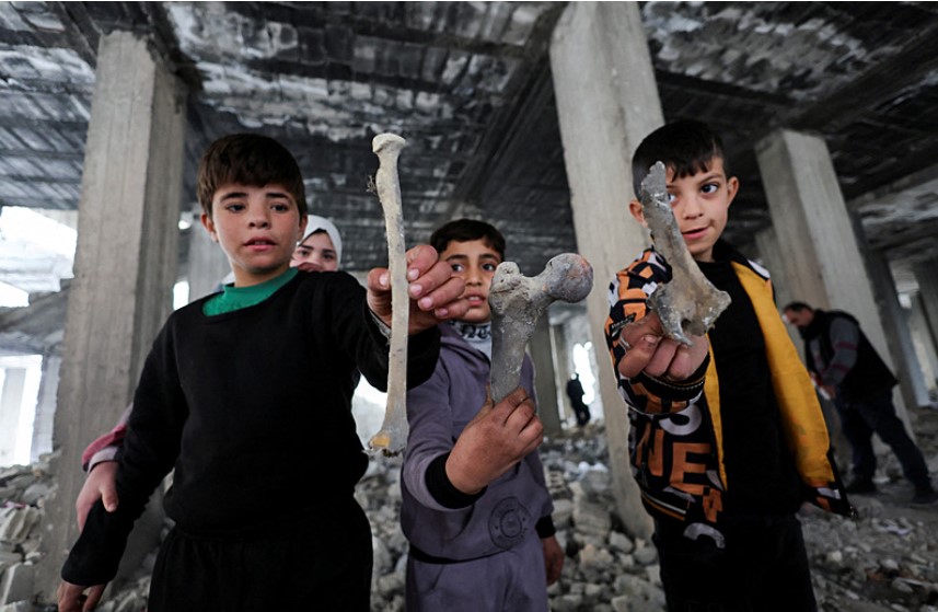 Eli kanlı diktatör Beşşar Esad yönetiminin düşmesinin ardından Suriye'de işlenen insanlık suçlarına ilişkin yeni gelişmeler yaşanmaya devam ediyor. Londra merkezli Financial Times, Şam'ın Tadamon Mahallesi'nde rejim askerlerinin işlediği savaş suçlarını görüntüledi. Esad rejiminin ölüm makinesine dönüştürdüğü mahalledeki çocuklar insan kemikleriyle oynuyor.