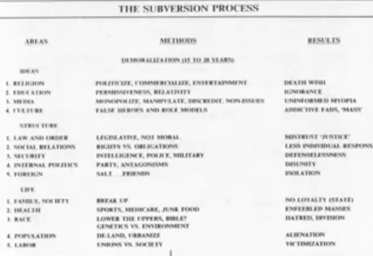 Batılı ülkelerin yıllardır kurdukları sömürü düzeni özellikle İslam toplumlarını hedef alıyor. Planlı ve profesyonel bir şekilde yürütülen bu çalışmalar 1970 yılında Sovyetler Birliği'nden kaçarak Kanada'ya sığınan eski üst düzey KGB ajanı Yuri Bezmenov tarafından detaylıca anlatılan görüntülerle yeniden gündem oldu.