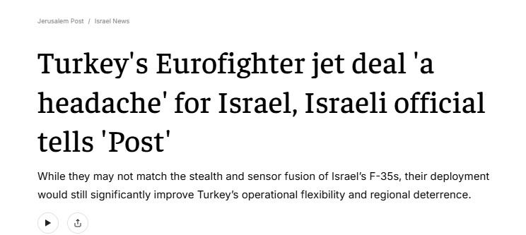 Eurofighter anlaşması dünya basınında! İsrail'de alarm zilleri: Tel Aviv'in baş ağrısı Türkiye