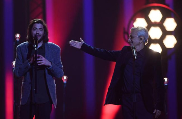 Şarkıların seslendirilmesinin ardından geçen yılın galibi 28 yaşındaki Portekizli Salvador Sobral, 75 yaşındaki Brezilyalı Caetano Veloso'yla birlikte sahne aldı.