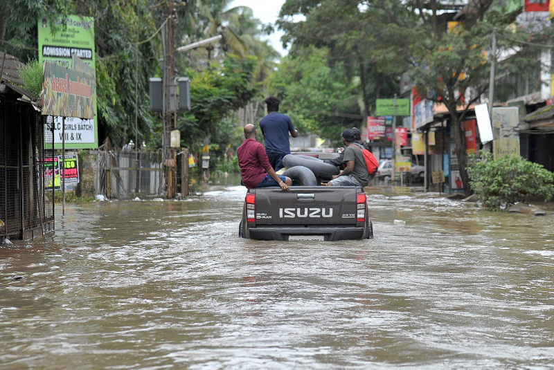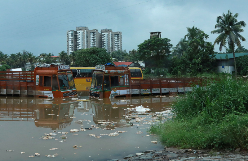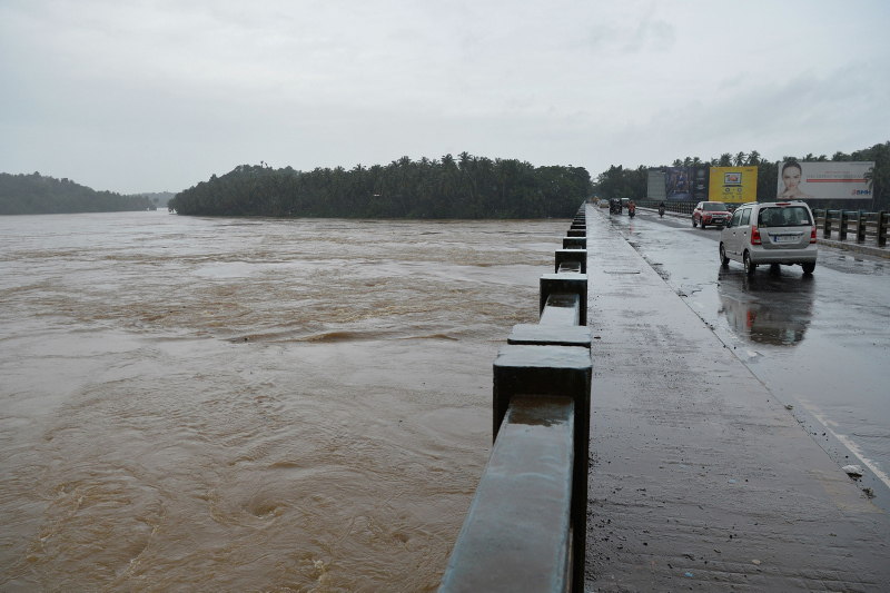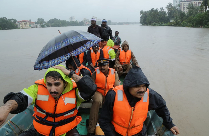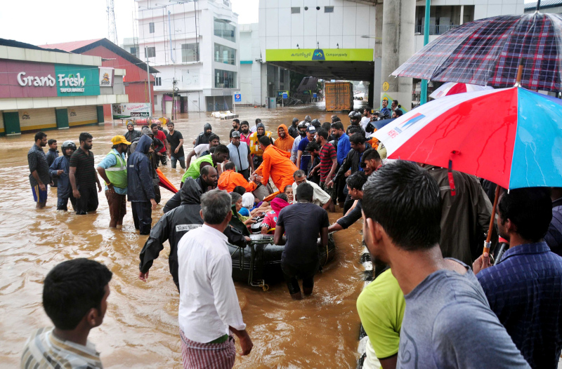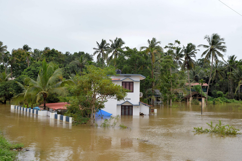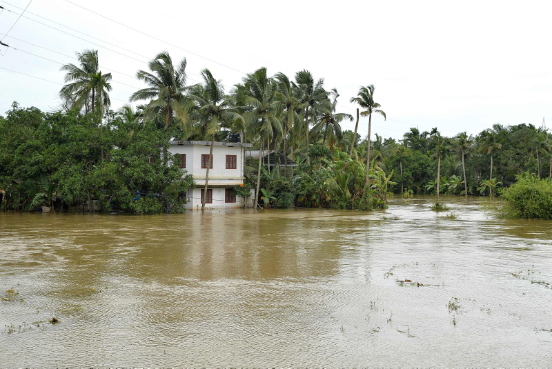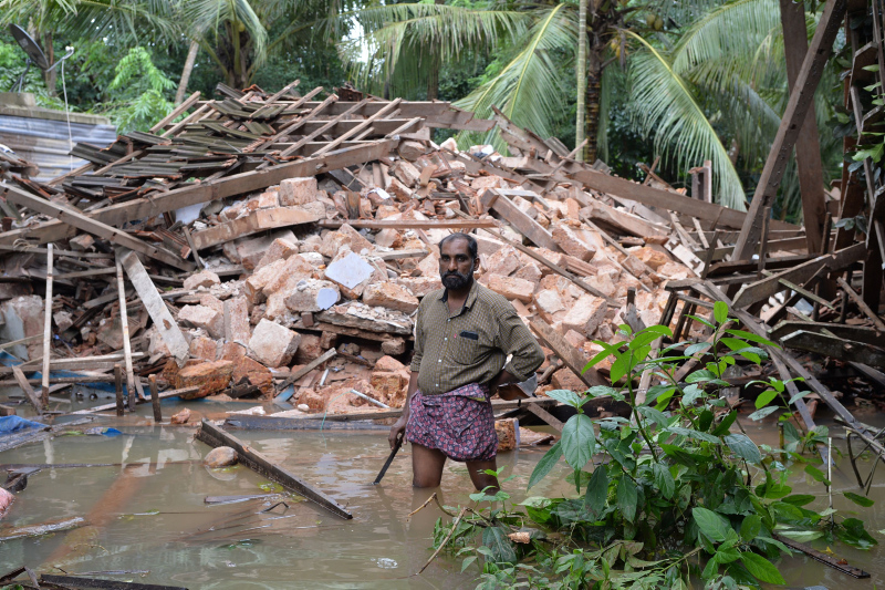 Kerala eyaletinde, aşırı yağışlar nedeniyle barajlar ve nehirler taştı, ana yollar ve köprüler çöktü, evler selde sürüklendi.