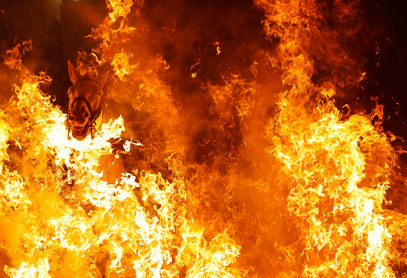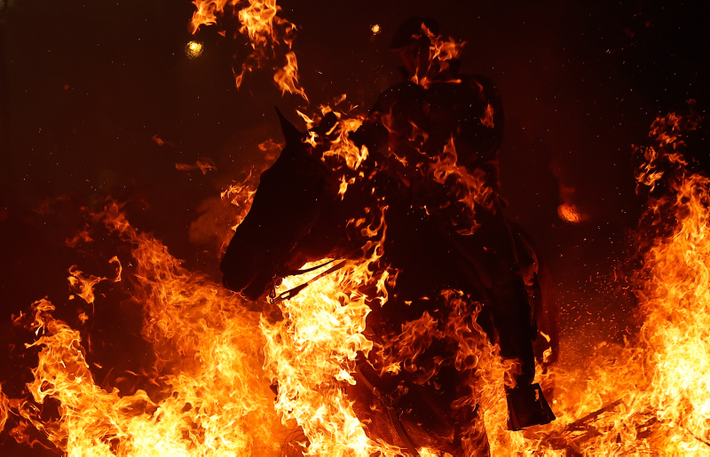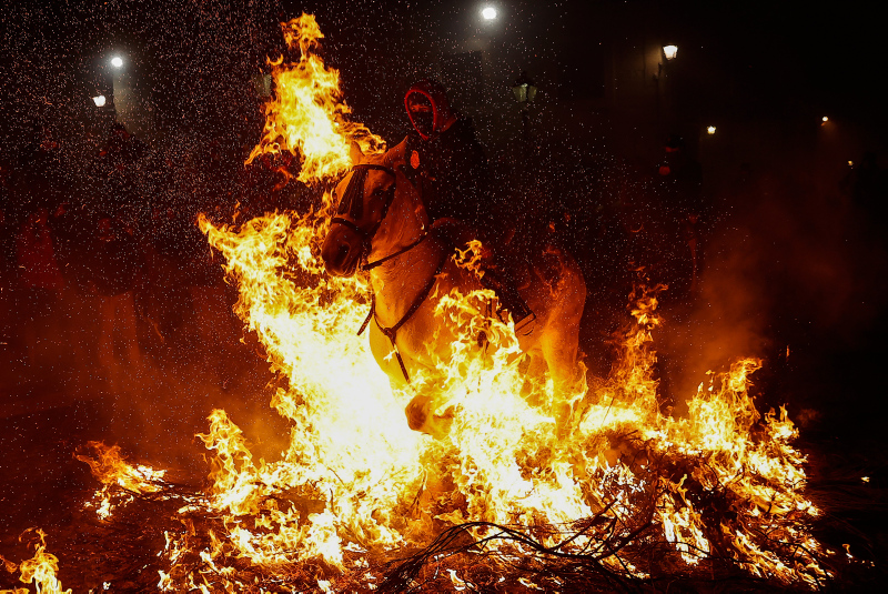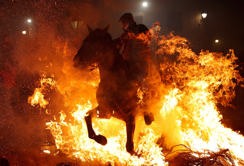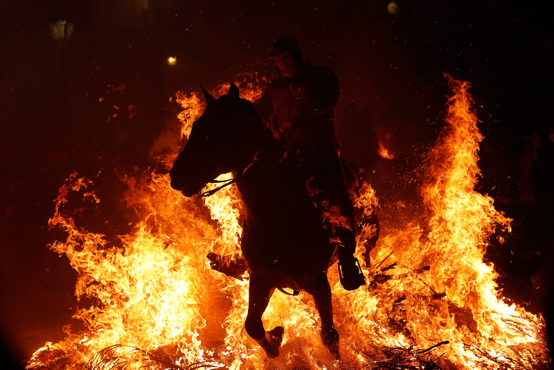 İspanya'nın Avila kentinin San Bartolome de Pinares köyünde atlar "kötü ruhlardan arındırılmak" için ateş üzerinden atlatıldı. Ateşin üzerinden geçirilen atların acı çektiğini savunan hayvan hakları dernekleri ise bu geleneğin kaldırılmasını talep ediyor.