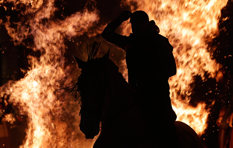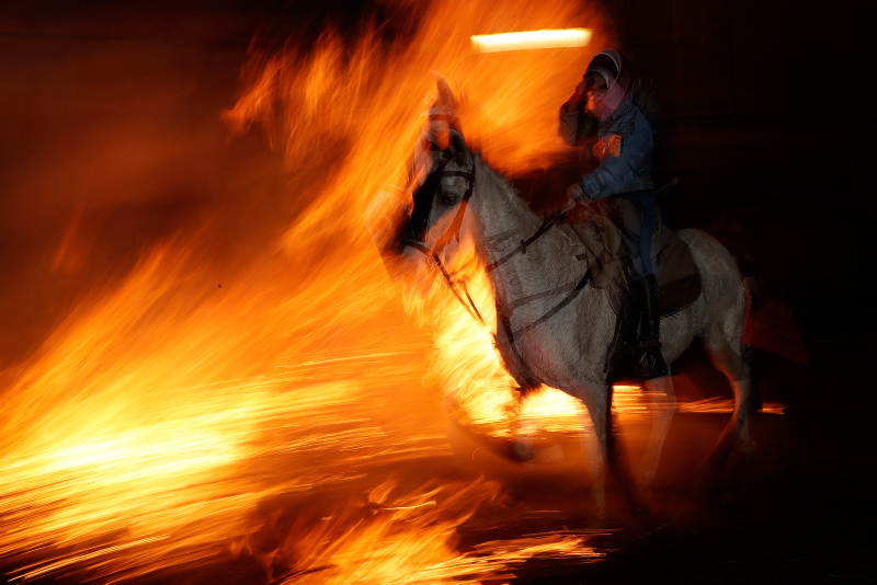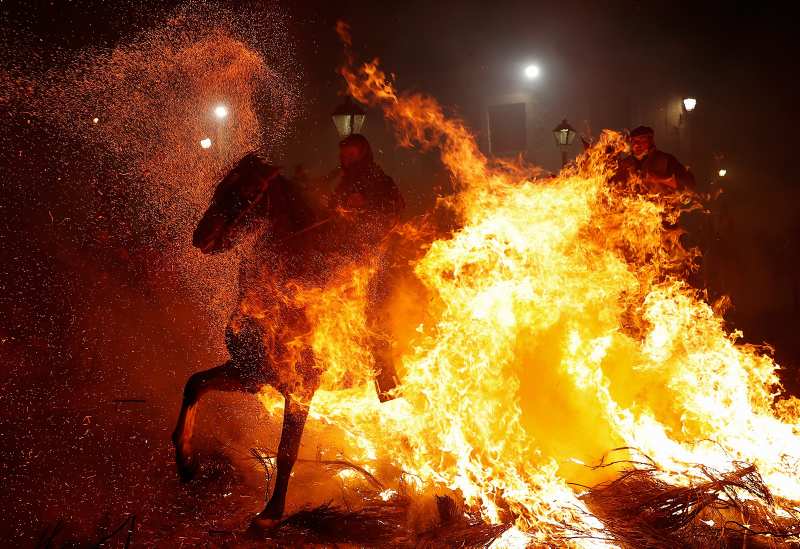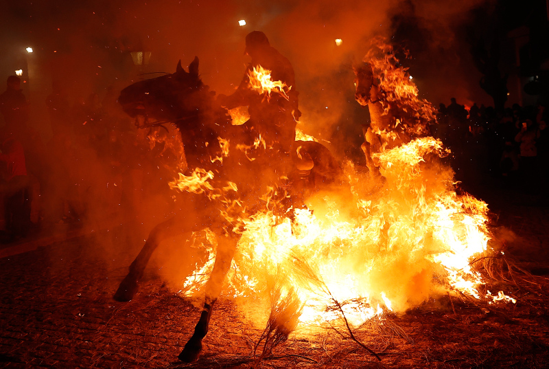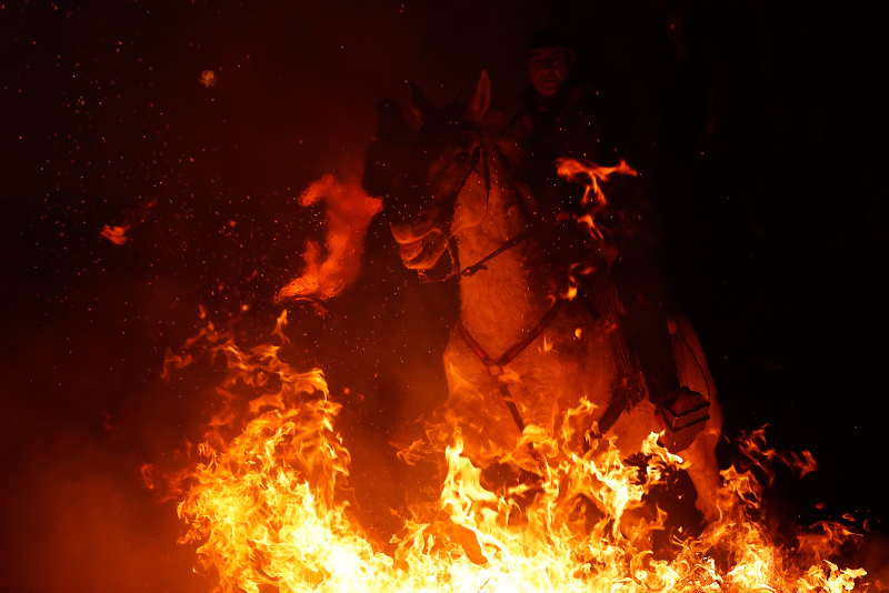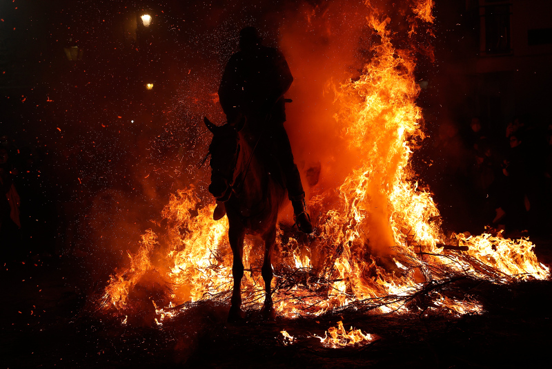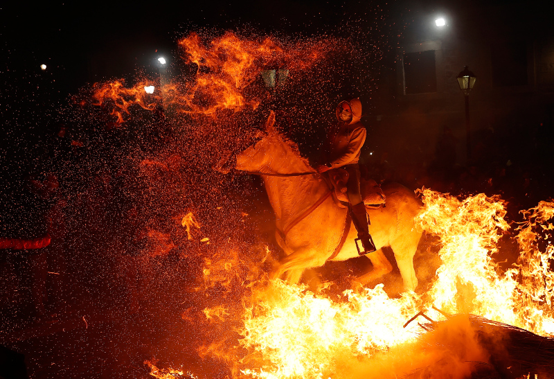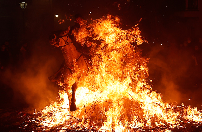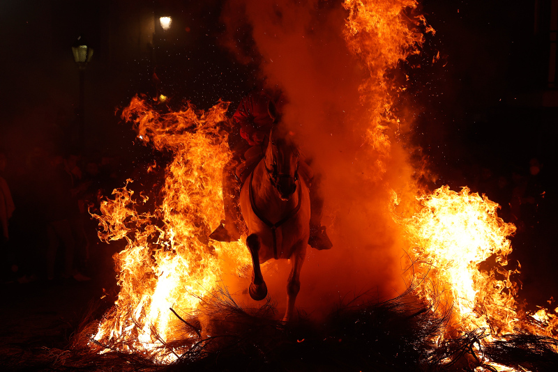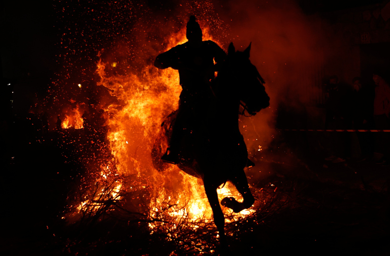 İspanya'nın orta bölgesindeki Avila kentinin San Bartolome de Pinares köyünde, 18. yüzyıldan kalma "Las Luminarias" geleneği kapsamında atlar "kötü ruhlardan arındırılmak" için ateşin üzerinden atlatıldı.