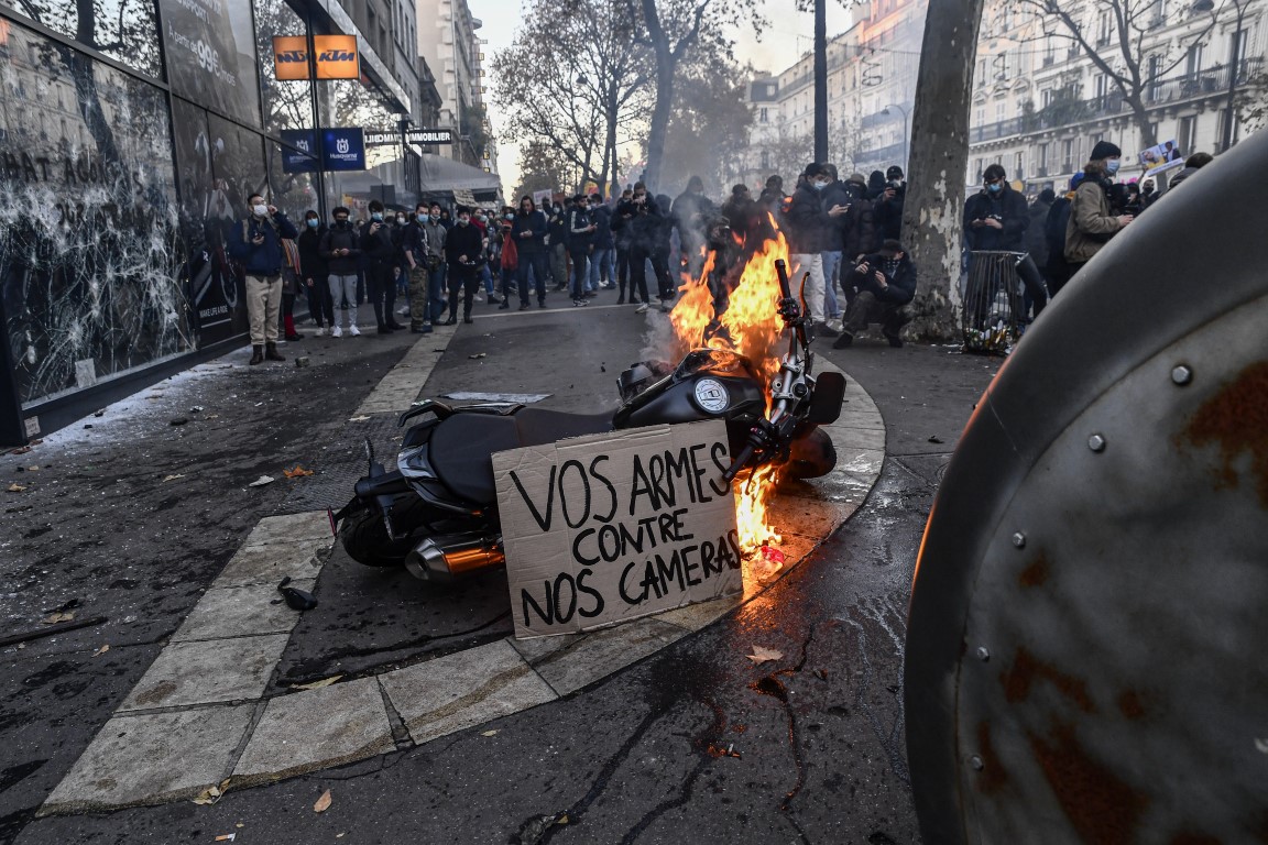 Polisin topluma örnek olması gerektiğini ifade eden Macron, Paris'te geçen hafta tartışmalı güvenlik yasa tasarısına karşı yapılan protesto eyleminde polise yönelik şiddetin de kabul edilemez olduğunu aktardı.