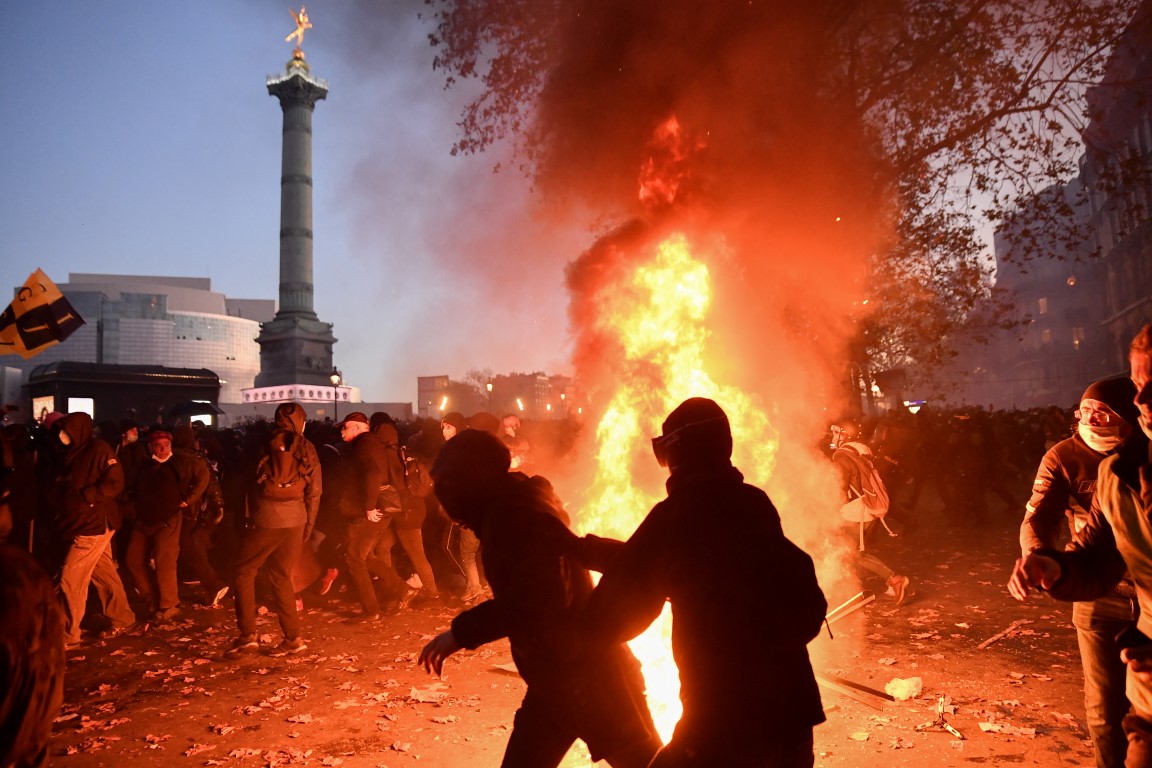 Başkent Paris'in Republique Meydanı'nda 23 Kasım'da barınmaya çalışan sığınmacıların polis tarafından tahliyesi edilmesinin doğru olduğunu savunan Macron, sığınmacıların tahliye edildikten sonra barınacağı yerlere yerleştirildiğini söyledi.