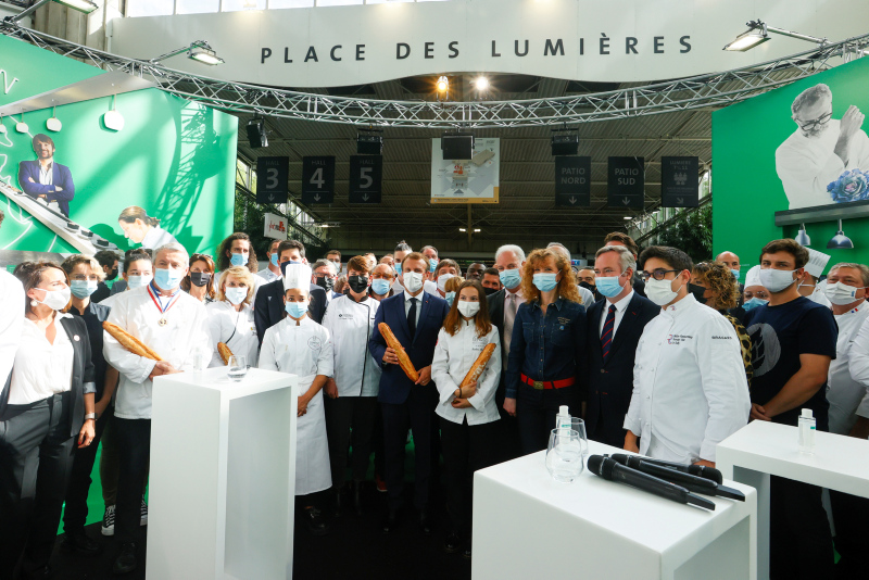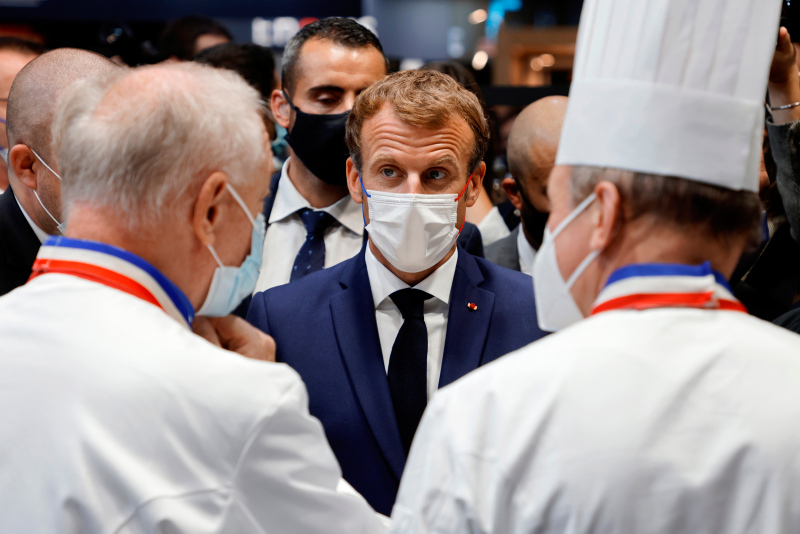 Sosyal medyada paylaşılan görüntülerde, Lyon'da otelcilik ve restoran sektörüne yönelik uluslararası fuarı ziyaret eden Macron'a, etrafında korumalar ve fuar katılımcılarının olduğu sırada yumurta fırlatıldı.
