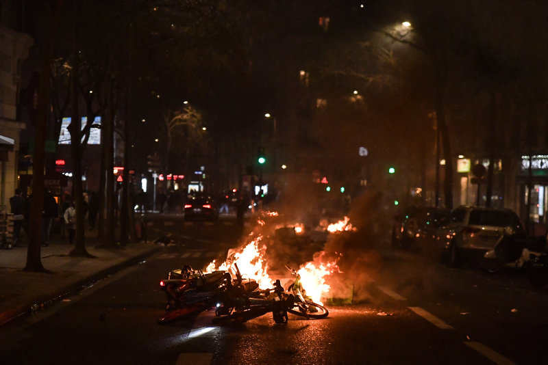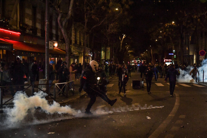 Fransa'da emeklilik yaşının kademeli olarak 64'e çıkarılmasını içeren düzenlemeyi Anayasa'nın 49. maddesinin 3. fıkrasını kullanarak hayata geçirmeyi amaçlayan Macron hükümetine karşı tepkiler çığ gibi büyüyor. Ülkenin başkenti Paris'te sokaklar adeta yangın yerine döndü. Göstericiler buldukları çöp konteyneri, bisiklet ve scooterları ateşe verirken Fransız polisi sert müdahalede bulundu.