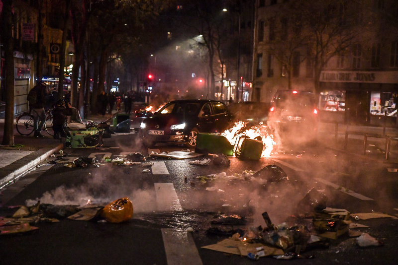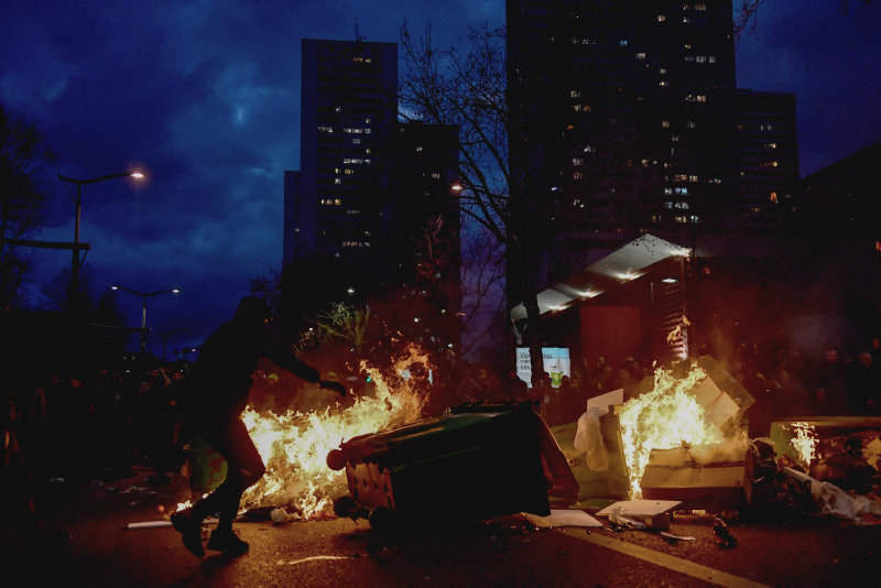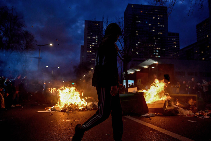 Fransa'nın başkenti Paris'te emeklilik reformu karşıtlarınca düzenlenen gösteri nedeniyle sokaklar savaş alanına döndü. Göstericiler öp konteynerleri, bisiklet ve scooterları ateşe verdi, polis karşıtı sloganlar attı. Polis ise sert müdahalede bulundu. Çok sayıda kişi gözaltına alındı.
