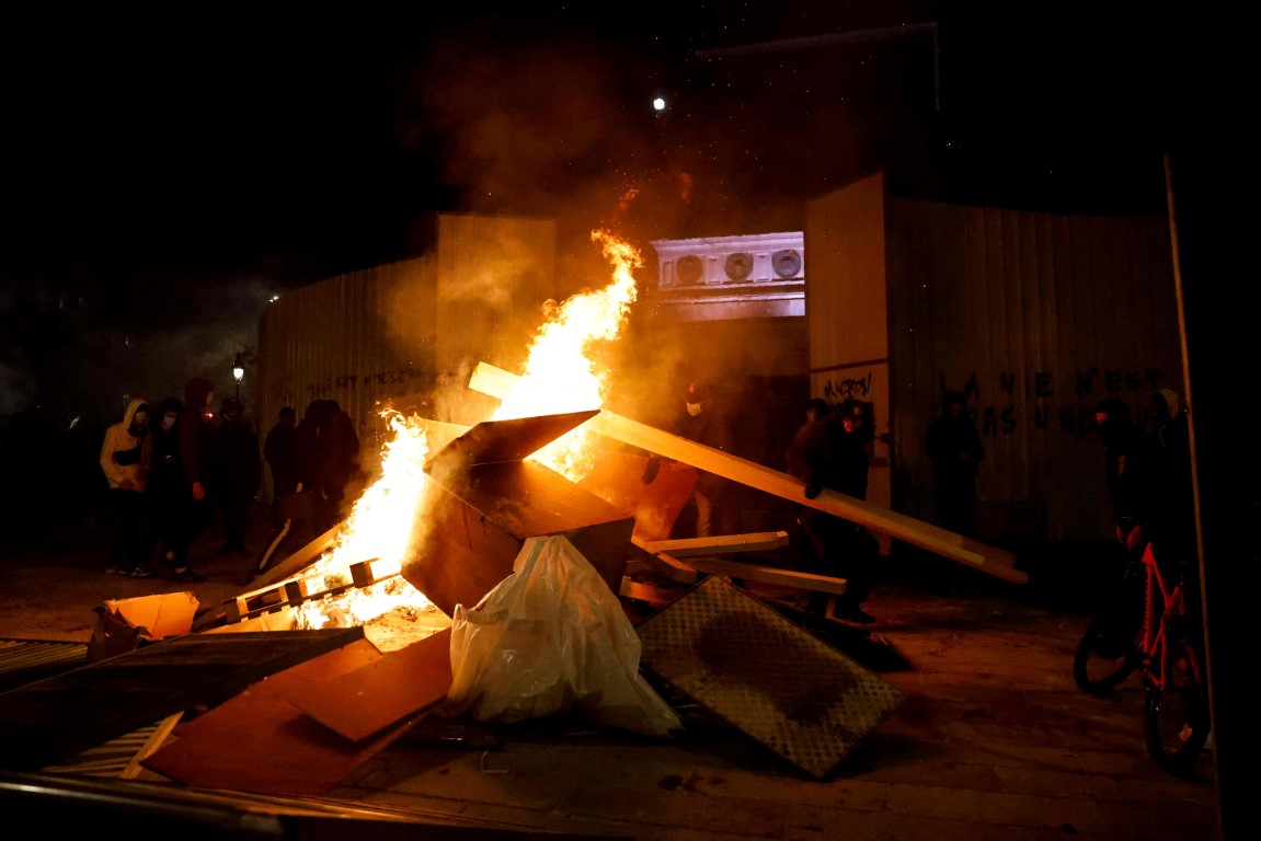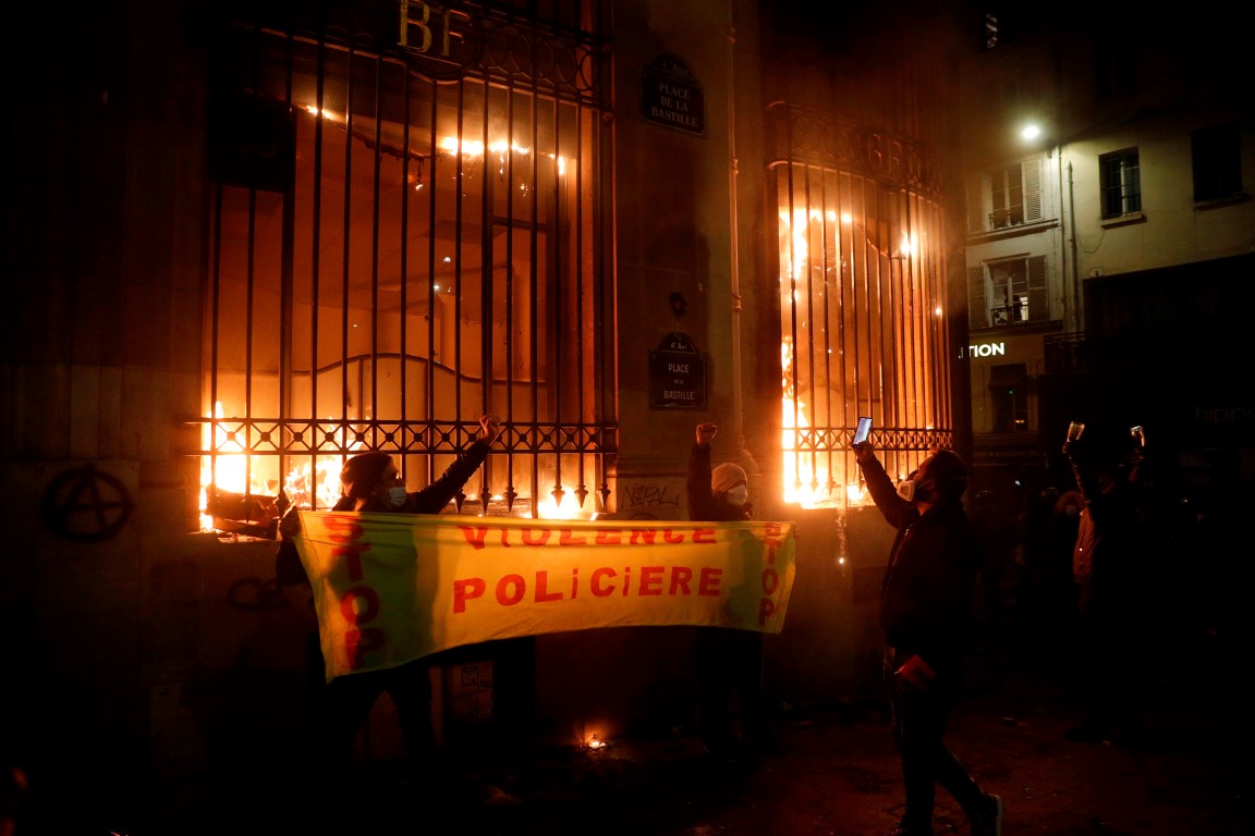 Fransa'da on binlerce kişinin katıldığı "Küresel Güvenlik" yasa tasarısı ve polis şiddetine karşı başlayan protestolarda Merkez Bankası ateşe verildi.