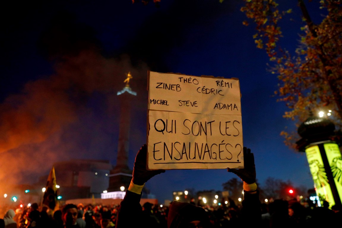 Fransa'nın başkenti Paris'te bulunan Republique Meydanı'nda bir araya gelen yaklaşık 46 bin kişi, Bastille Meydanı'na yürüyerek, hükümet tarafından çıkarılmak istenen "Küresel Güvenlik" yasasını ve artan polis şiddetini protesto etmişti.