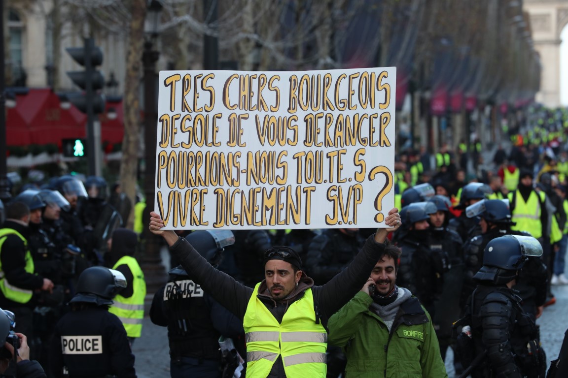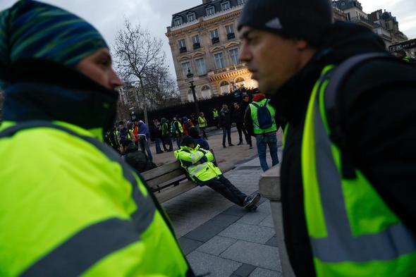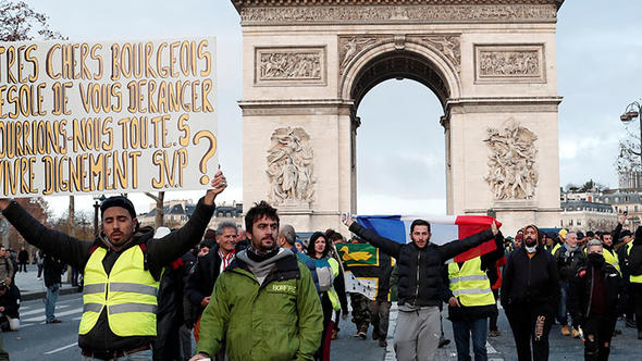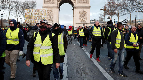 "Sarı yelekliler", başta Paris olmak üzere ülke genelinde akaryakıt zamlarını ve kötüleşen ekonomik koşulları protesto ediyor.