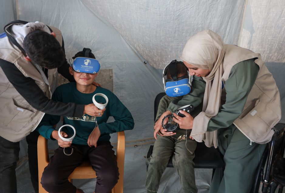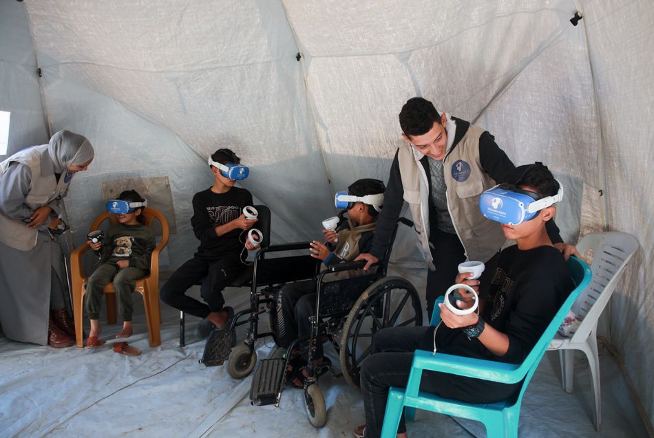 Gazze'nin Zuveyde bölgesinde sağlık ekipleri, savaşın çocuklar üzerindeki psikolojik etkilerini azaltmak için Sanal Gerçeklik (VR) teknolojisi kullanıyor. Çocuklar, VR gözlükleriyle yıkım görüntülerinden uzaklaşıp güvenli ve sakin sanal ortamlarda vakit geçiriyor.