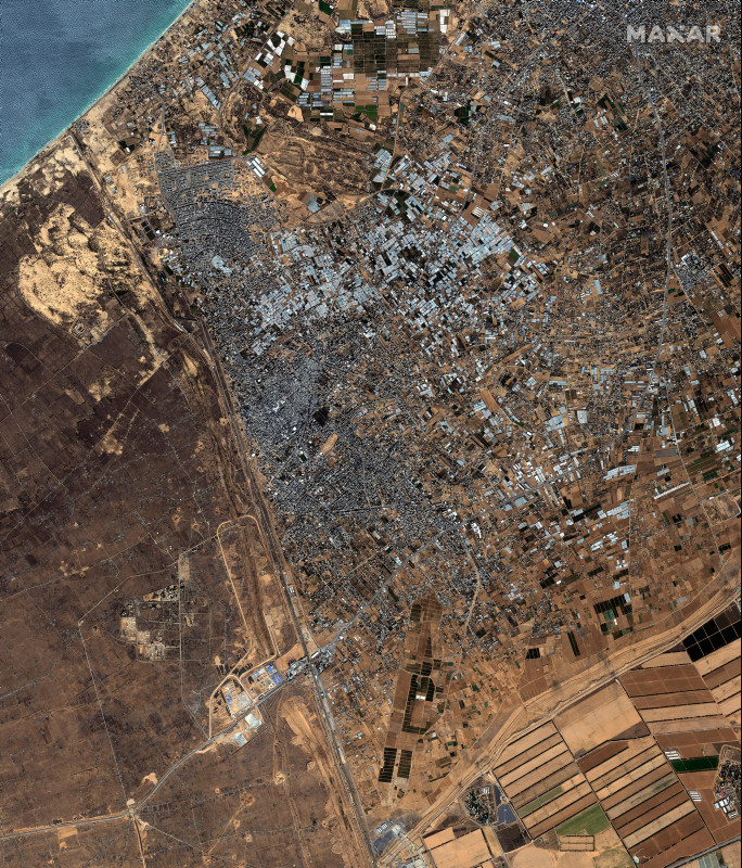 7 Ekim Cumartesi günü Hamas'ın silahlı kanadı Izzeddin Kassam'ın İsrail'e karşı "Aksa Tufanı" isimli bir operasyon gerçekleştirmesinin ardından başlayan savaş devam ediyor. Sivilleri karanlığa, açlık ve susuzluğa boğan İsrail, Gazze'yi de enkaz kente çevirdi. Gazze'deki yıkım uydu fotoğraflarına da yansıdı. Beyt Hanun'da kaydedilen görüntülerde bölgedeki binaların çoğunun yıkıldığı görüldü.