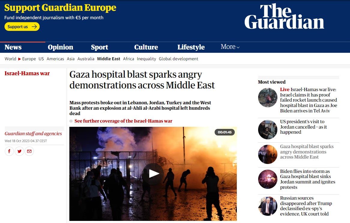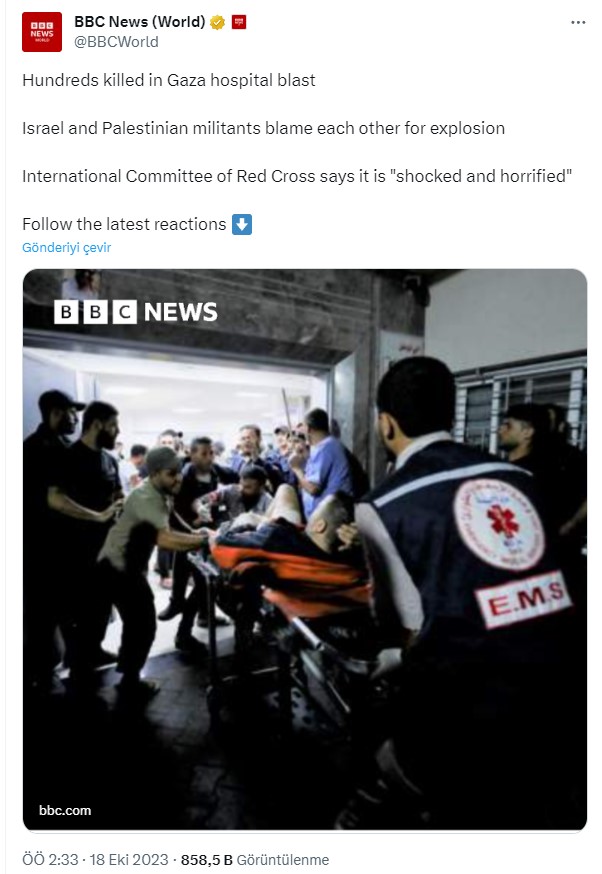 Gazete kısa süre sonra bu ifadeyi, "Filistin Sağlık Bakanlığı, İsrail hava saldırısının Gazze'deki hastaneyi vurduğunu ve 500 kişiyi öldürdüğünü açıkladı." şeklinde değiştirdi.