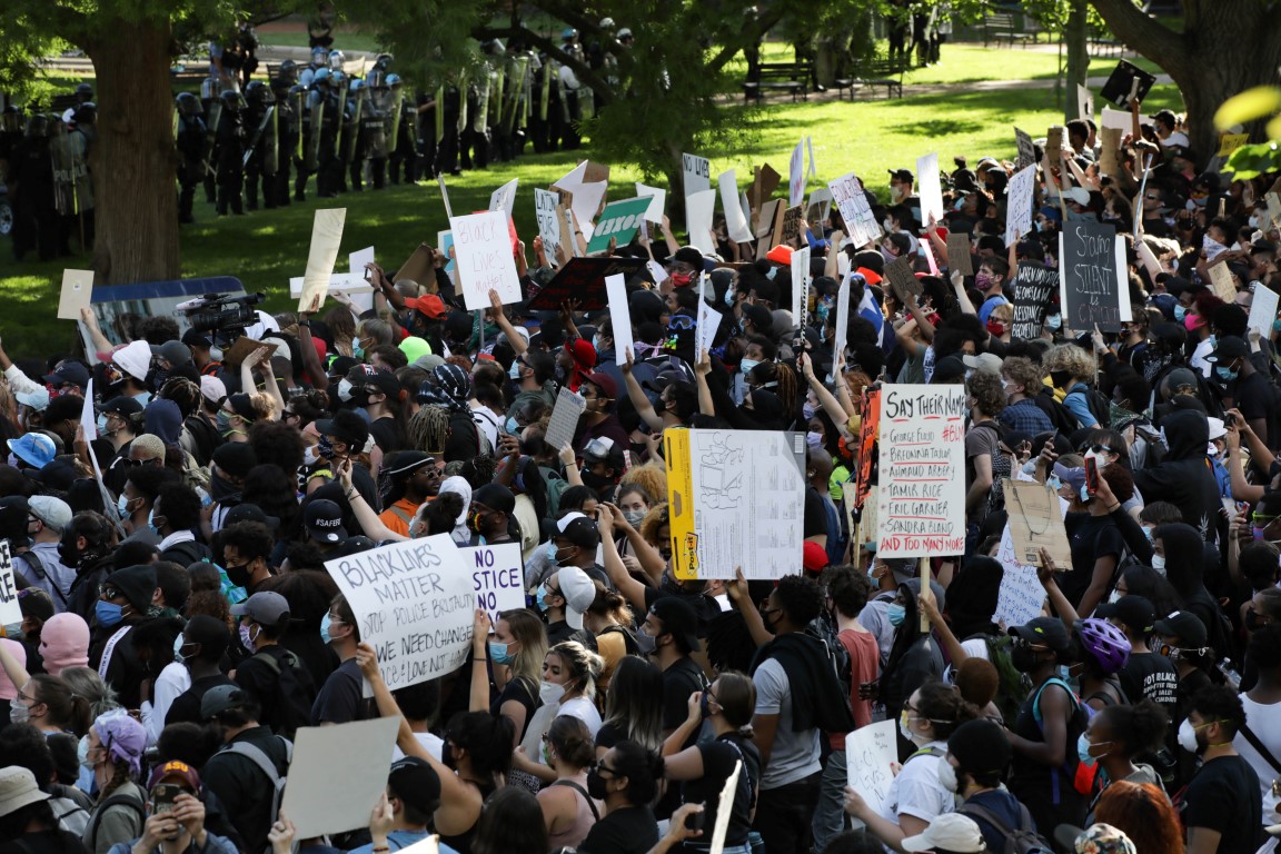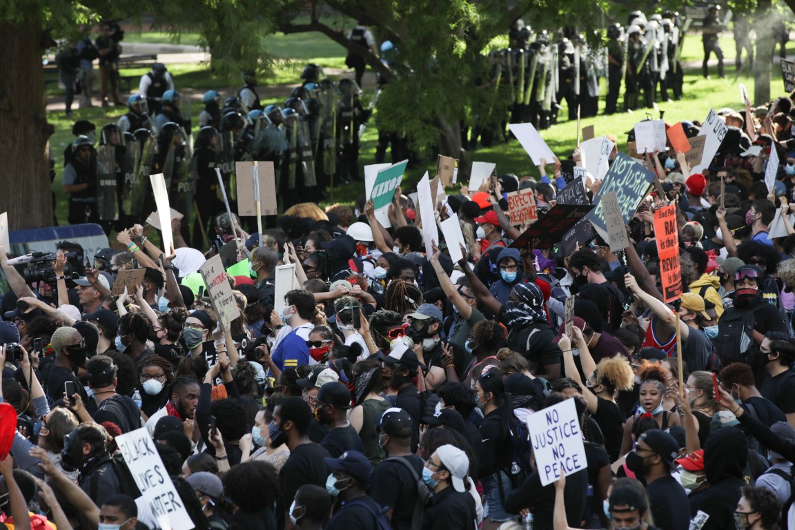ABD'de George Floyd'un polis tarafından gözaltına alındığı sırada öldürülmesinin ardından başlayan protestolar sürüyor. Olayın gerçekleştiği kent Minneapolis yakınındaki St.Paul kentinin ardından başkent Washington'da da yine binlerce kişi bir araya geldi.