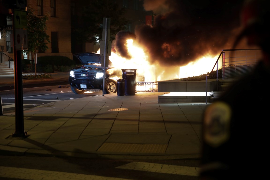 Çöp kovalarının yakıldığı başkent sokaklarında Beyaz Saray'ın yakınlarındaki tarihi kilisede de yangın çıktı.