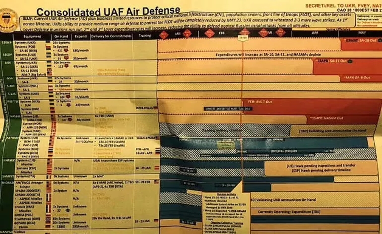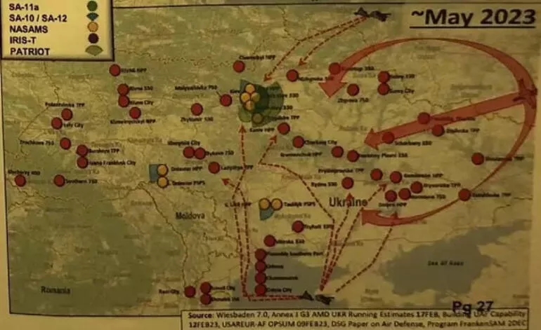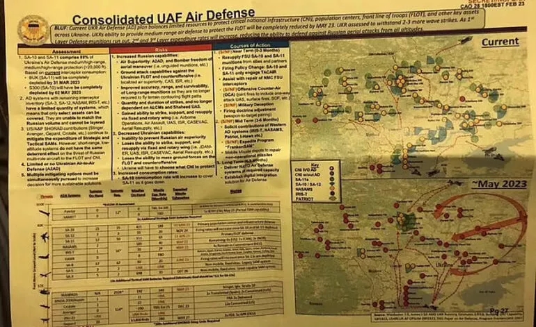 Hürriyet'in haberine göre, başka bir deyişle yeni sızan Pentagon belgelerine göre, Ukrayna'nın hava savunması haftalar içinde tükenebilir, bu da ülkeyi Putin'in savaş uçaklarına karşı savunmasız hale getirebilir. Askeri uzmanlar ABD'nin 2 milyar dolarlık yardımının Ukrayna için yeterli olmayabileceği konusunda uyarıyor. NYT'ye konuşan bir ABD'li yetkili söz konusu yardımın Ukrayna taarruzu öncesinde kilit öneme sahip olduğunu vurguladı. Zira sızdırılan belgelere göre Ukrayna'nın stokları hızla tükeniyor ve bu da Rus uçaklarına saldırı için bir pencere açıyor. Sızan Pentagon belgeleri ile ilgili ABD jet hızıyla soruşturma başlattı.