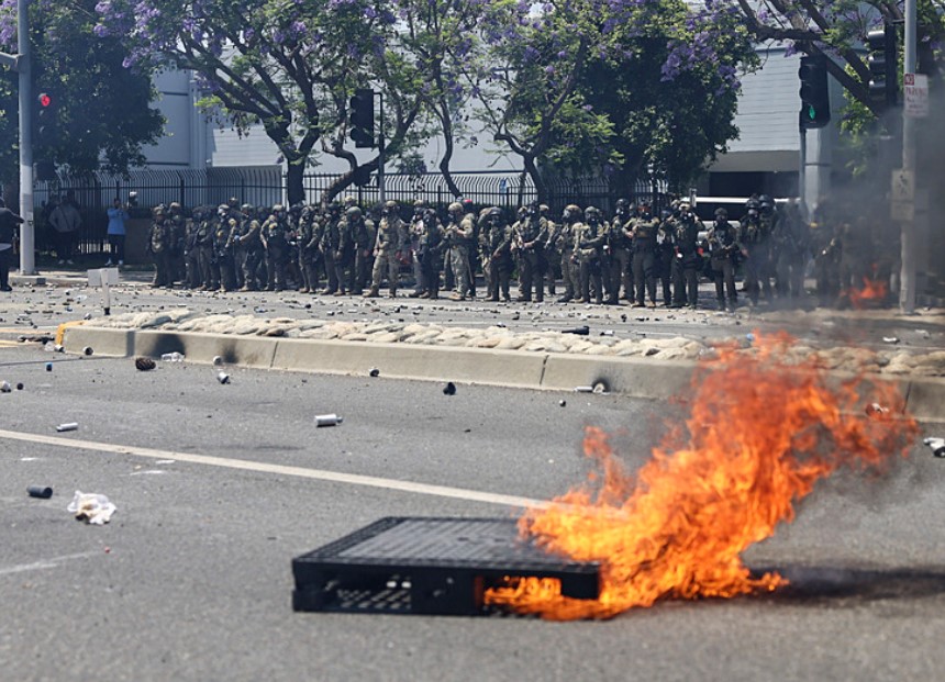 ABD Başkanı Donald Trump, göçmenlik baskınları sonrası başlayan protestoları bastırmak amacıyla Los Angeles kentine 2.000 Ulusal Muhafız askerinin gönderilmesi talimatını verdi. Karar, Beyaz Saray'ın cumartesi gecesi yaptığı açıklamayla duyuruldu.