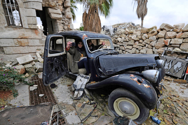 Halep harabelerinde hatıra selfiesi!