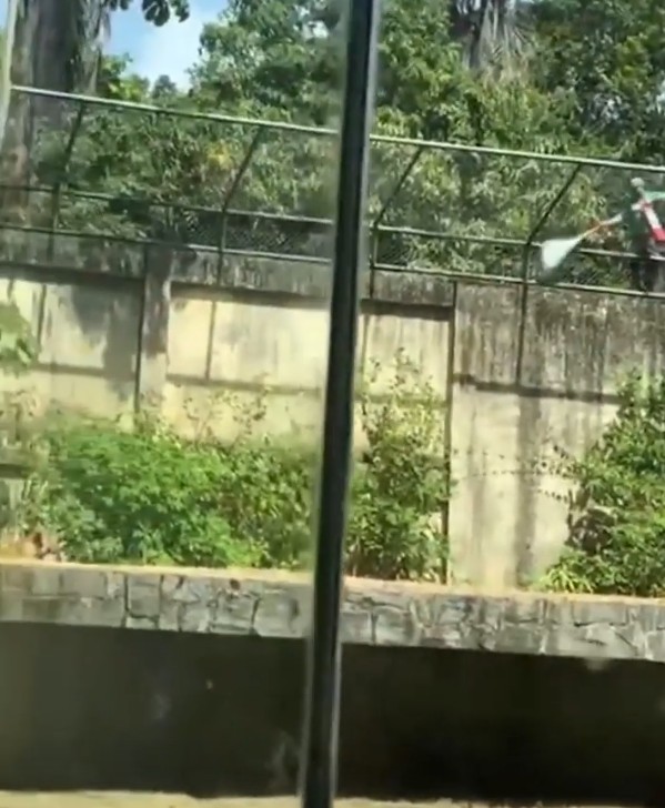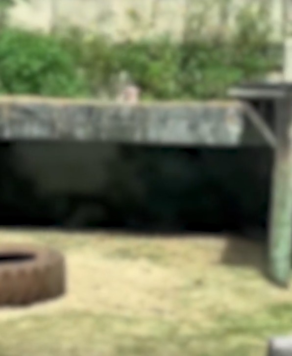 Kafesin yan kısmındaki bir yapıya tırmandığı,