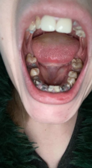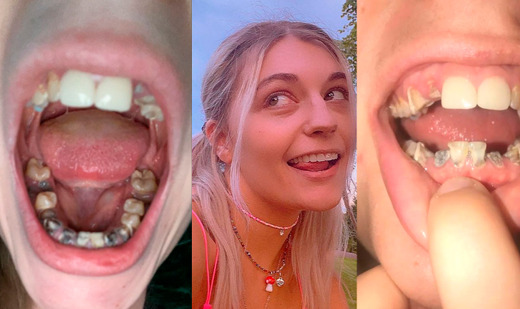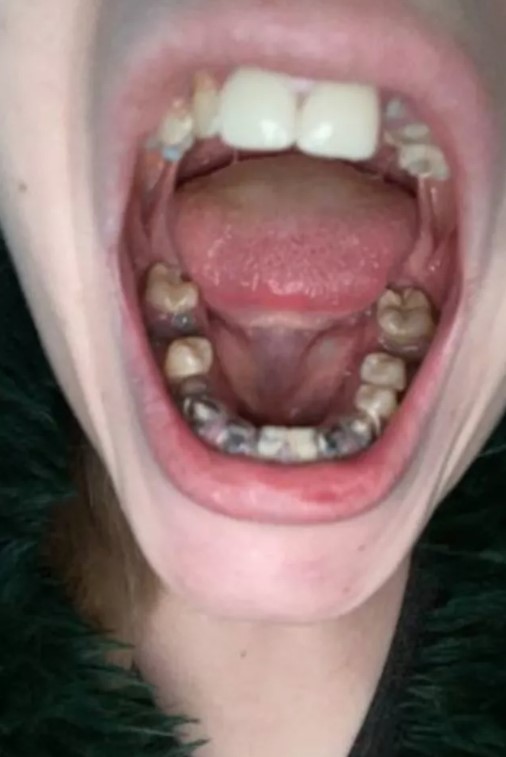 Genç kadının dişleri 2018 yılında dökülmeye başladı. Önce siyahlaşmaya sonra çürümeye ve sonunda dökülmeye başladı.