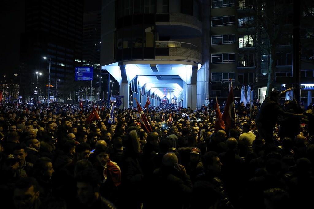 Hollanda polisi, Aile ve Sosyal Politikalar Bakanı Fatma Betül Sayan Kaya'yı eskortla bölgeden uzaklaştırdıktan sonra, Türkiye'nin Rotterdam Başkonsolosluğu önünde toplanan binlerce Türk vatandaşını güç kullanarak dağıttı.